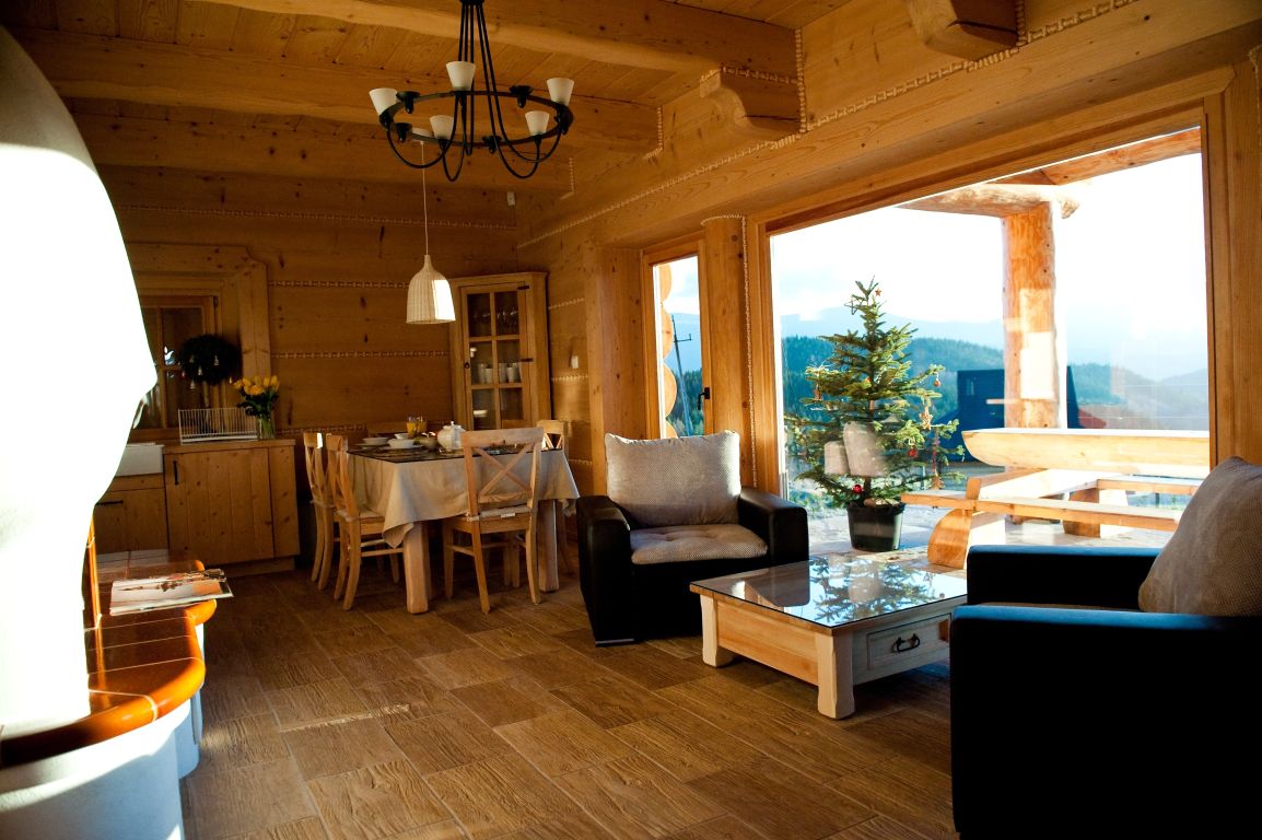 Dwa przytulne, drewniane domki położone na górskiej polanie w Zawoi z widokiem na majestatyczną Babią Górę. Kominki, naturalne materiały i przestrzeń zaprojektowana z myślą o prawdziwym odpoczynku. To miejsce, gdzie zwalnia się tempo i naprawdę czuje bliskość gór.